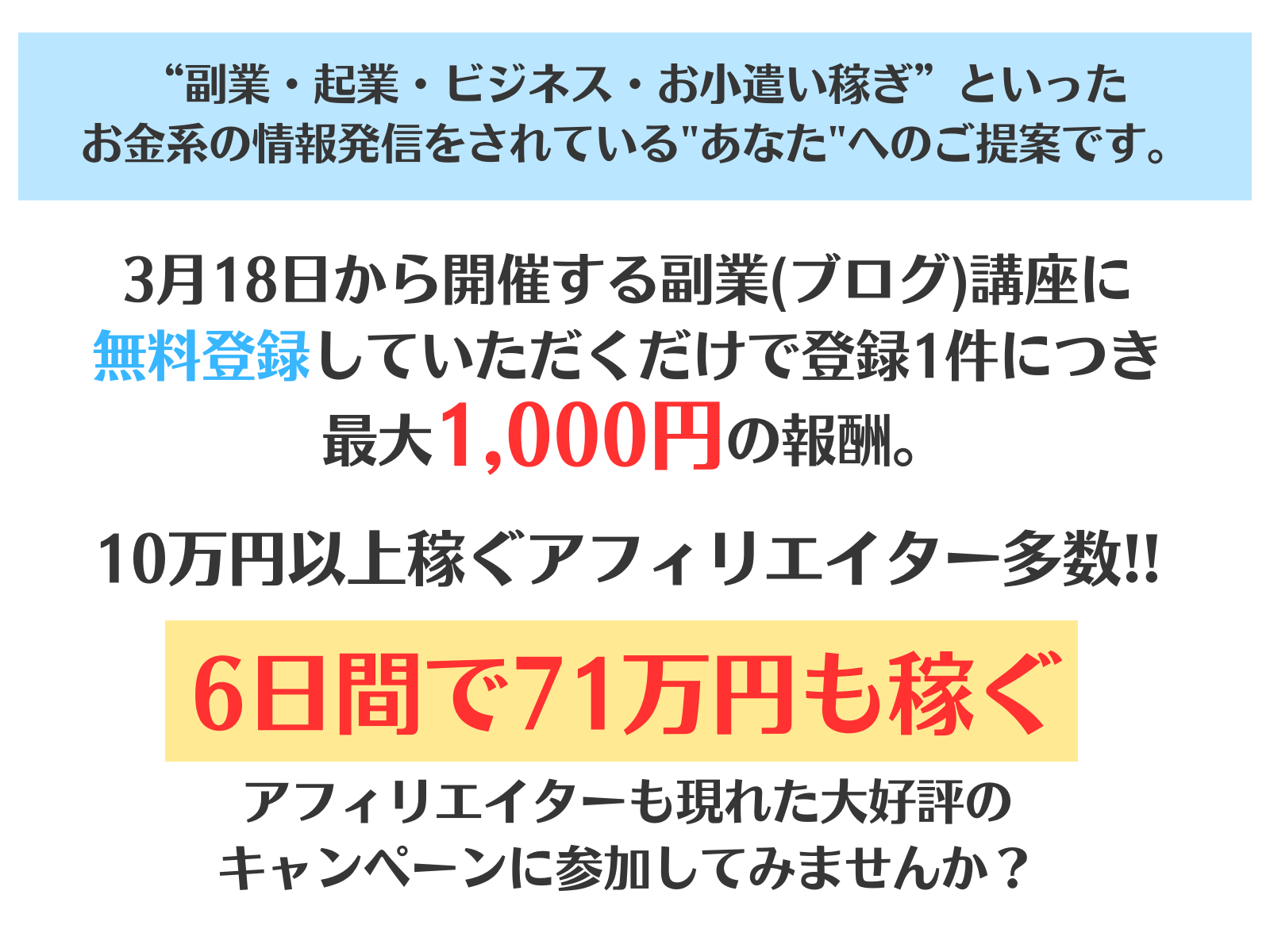 そんな手法を教えるための無料講座の案内キャンペーンなので、前回ご紹介いただいた方にも大変喜んでいただいてます。